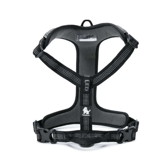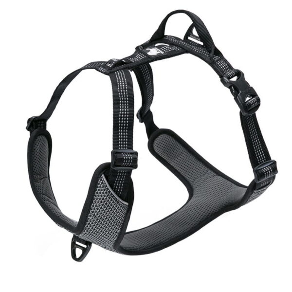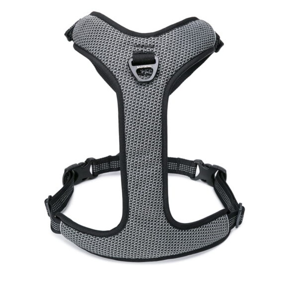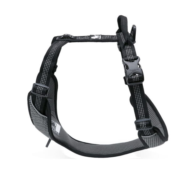 • Dwa punkty do podpięcia smyczy ze stopu aluminium: z tyłu na grzbiecie psa oraz z przodu przy klatce piersiowej psa.